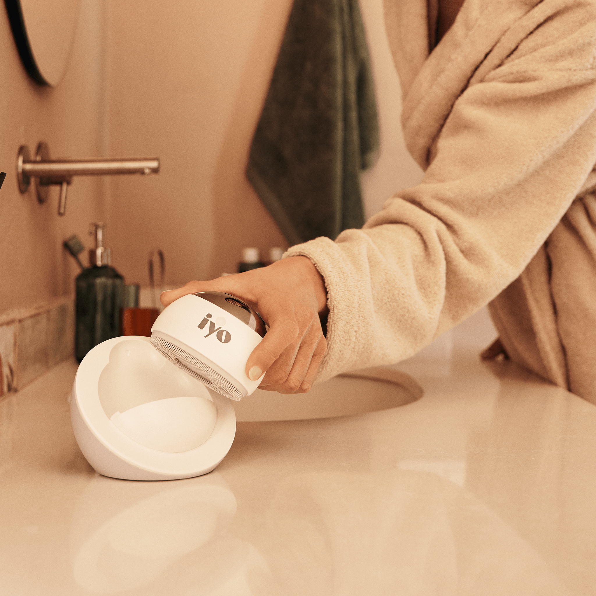 Gently move the device in circular motions, then clean the brush head and place it on the charging stand.